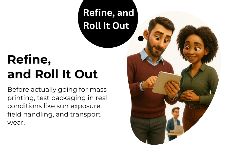 Before actually going for mass printing, test packaging in real conditions like sun exposure, field handling, and transport wear. Again, supremely important before you finally deploy the design! Gather various farmer feedback and refine the layout, language, or imagery accordingly! Great agricultural packaging is indeed a conversation, not a one-time design.